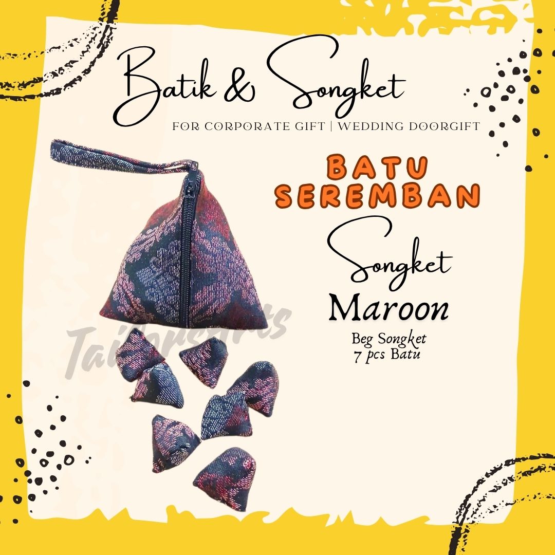 Batu Seremban Songket Handmade (1 Bag+7pcs Batu) – MAROON SONGKET (BS06)